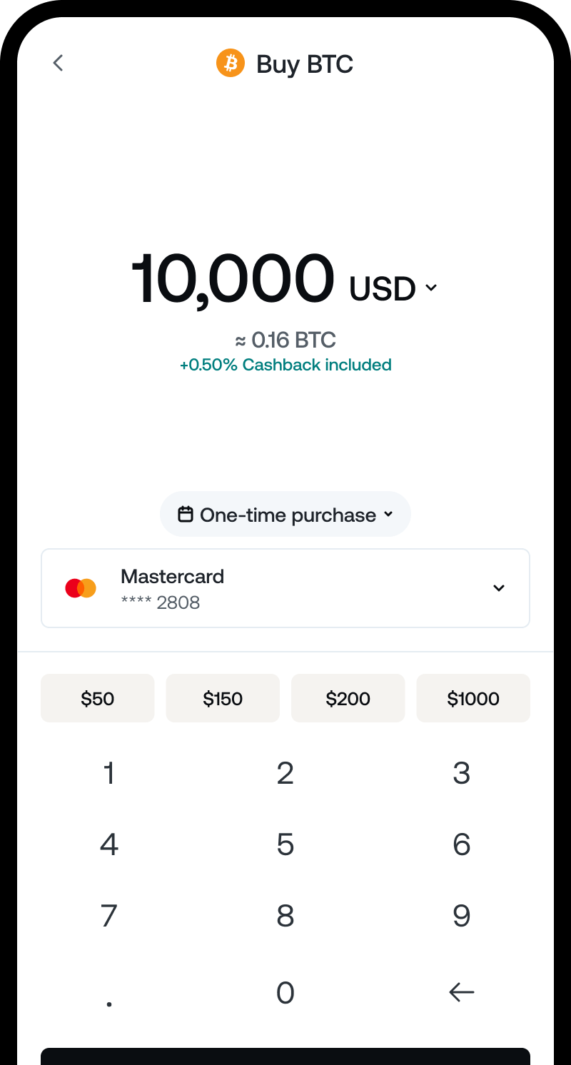 Receive up to 0.5% crypto cashback per purchase.
